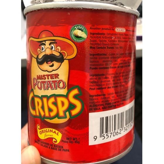 Ingrédients: Flocons (contient sulfites) et fécule de pomme de terre 77 %, huile de palme, sel, épices et herbes aromatiques, exhausteurs de goût (glutamate monosodique, inosinate disodique, guanylate disodique), arôme, oignon en poudre, ail en poudre, correcteur d'acidité (chlorure de potassium), antioxydant (extrait de romarin), extrait de piment.