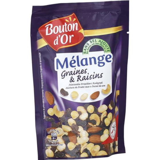MELANGE GRAINES ET RAISINS SANS SEL AJOUTE BOUTON D'OR 150G