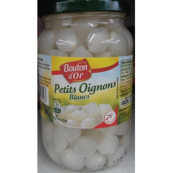 Ingrédients: Petits oignons blancs (dont conservateur : _sulfites_), eau, vinaigre d'alcool, sel, antioxydant : acide citrique, arôme estragon.