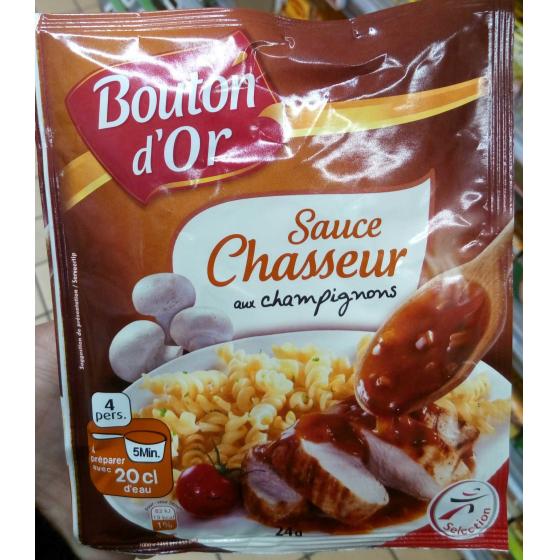 Ingrédients: Farine de _blé_, tomate, sel, vin blanc sur maltodextrine de blé, fécule de pomme de terre, champignons 6,7 %, arômes (contient _blé_, _lait_, _soja_), sirop de glucose, épices et aromates (paprika, ail, persil, thym, laurier, poivre), huile de colza, sucre, oignon, exhausteurs de goût (E621, E631, E627), colorant (E150c).