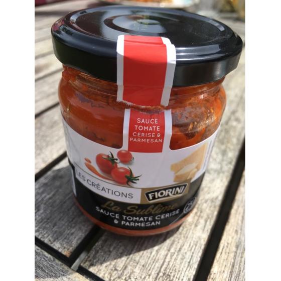 Ingrédients: Purée et pulpe de tomates (France) 91%, huile de tournesol, oignons, basilic 1,7%, sucre, sel, amidon transformé de maïs, huile d'olive vierge extra, arôme naturel de basilic, arôme naturel de basilic avec autres arômes naturels.