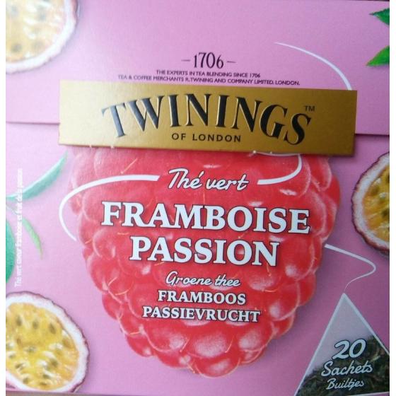 Ingrédients: thé vert, arômes (15%), morceaux de fruit de la passion (1%), morceaux de framboise (1%)