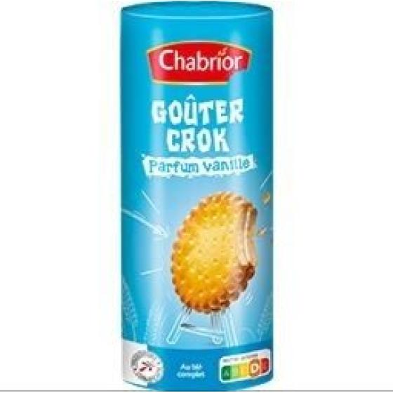 Ingrédients: Farine de blé 33 %, sucre, farine complète de blé 17 %, graisse végétale (palme), huile de tournesol,cacao maigre en poudre 4,7 %, amidon de blé, poudres à lever (carbonate acide d'ammonium, carbonate acide de sodium), lait écrémé en poudre, émulsifiant : lécithine de tournesol, sel, protéines de lait, acidifiant : acide citrique, arôme naturel, arôme naturel de vanille et autres arômes naturels