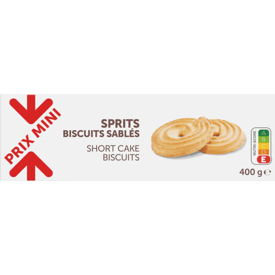 Ingrédients: Farine de blé 81,8 %, sucre, huile de palme, beurre pâtissier 5,0 %, poudre à lever (carbonate acide d'ammonium, carbonate acide de sodium), sel, émulsifiant (lécithine de soja), arôme. Peut contenir œufs et fruits à coque.