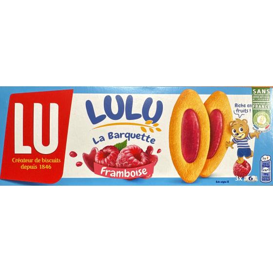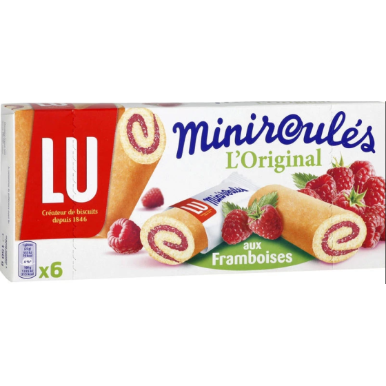 Ingrédients: Céréales [farine de froment (32%), céréales complètes (15.1%) (farine complète de froment (15%), farine complète de seigle, farine complète d'orge)] - sirop de glucose-fructose-sucre - matière grasse végétale (palme) - stabilisant: glycerol - sirop de glucose - amidon - pulpe de framboise concentrée (équivalent framboise 2%)-poudres à lever : carbonates d'ammonium et de sodium - sel - lait écrémé en poudre - acidifiants: acide citrique, citrates de sodium - colorant: rouge de betterave - gélifiant: pectines - arôme - perméat de lactosérum en poudre (lait). Peut contenir des traces de fruits à coque.