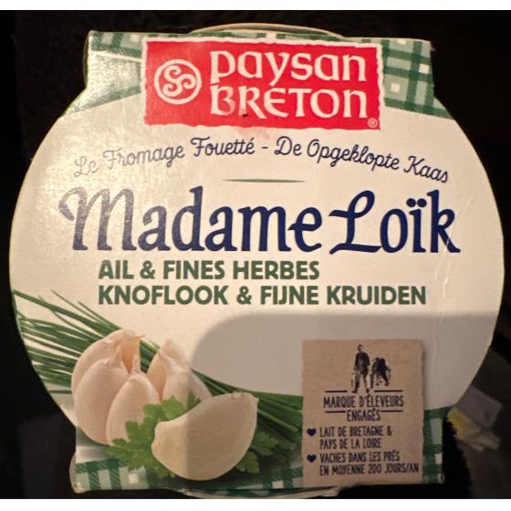Ingrédients: Lait et crème pasteurisés, ferments lactiques, ail et fines herbes (1,7%), sel (1,6%), stabilisant : E1442, poivre.