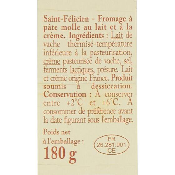 Ingrédients: Lait de vache pasteurisé, crème, sel, ferments lactiques et d'affinage, enzyme coagulante .
