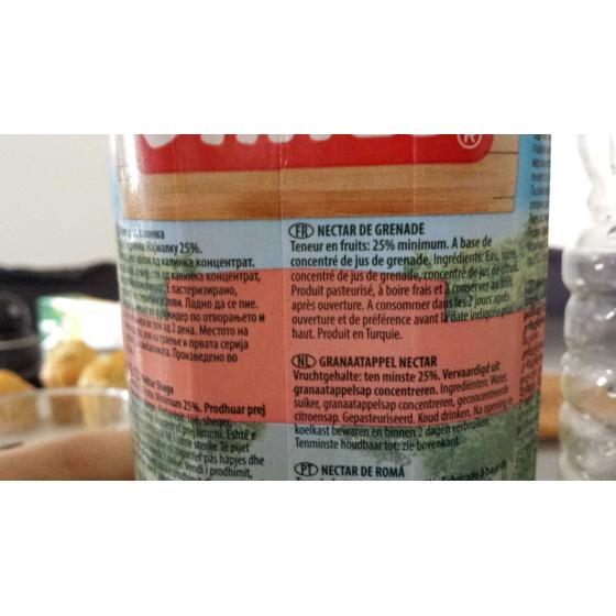 Ingredients: eau, sucre, concentré de jus de grenade, concentré de jus de citron