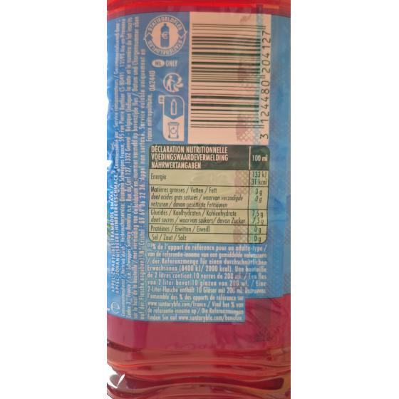 Ingrédients: eau, sucre, fructose, extrait de thé noir (1,2 g/l) acidifiant (acide citrique), jus de citron à base de concentré (0,1%), arôme, correcteur d'acidité (citrate trisodique), antioxydant (acide ascorbique), édulcorant (glycosides de stéviol).